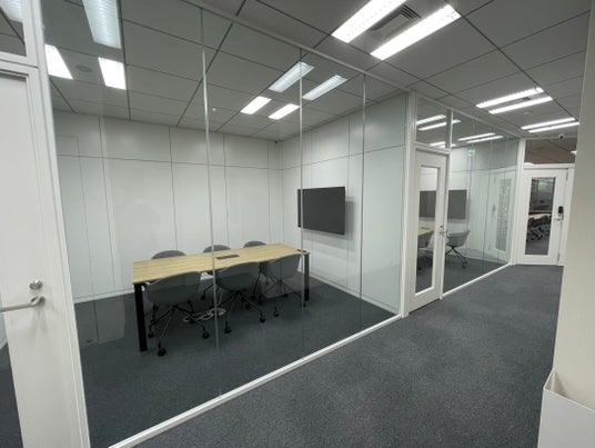透明感のあるガラス張りの会議室で開放的な雰囲気
