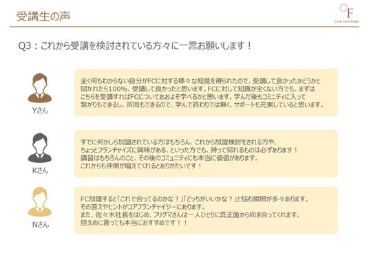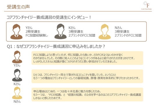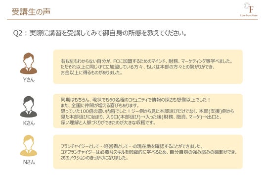 「既に加盟しているが、目の前の加盟事業をより成功に導ける確信を持った。」
