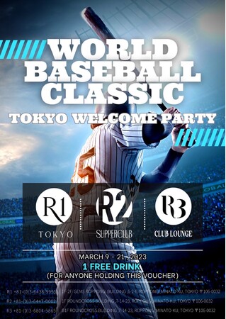 R1Tokyo Bar & Restaurant/R2 SUPPER CLUB/R3 Club Loungeの各3店舗にて、3月9日~21日のWBC開催期間中、特別イベント「WBC TOKYO WELCOME PARTY」を実施。