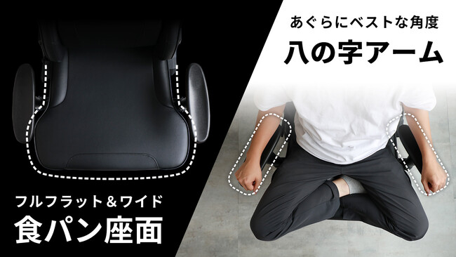 本製品は2022年4月22日に販売を開始し、約10ヶ月で累計販売額が3,000万円を突破*したゲーミングチェア「AGRelux」の新モデルです。初代モデルの特長である、あぐらがかける“食パン座面”を継承しつつ、ワーキングチェアとしても使いやすいようにサイズや仕様を見直すことで、価格を2割以上抑えました。