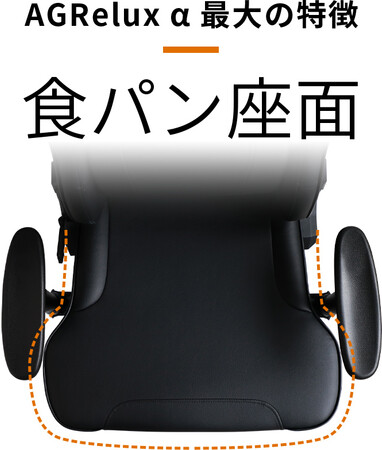 初代AGReluxで好評だった“食パン座面”などの特徴を継承しつつ、ひとまわりコンパクトにしてフットレストをなくしたことで、オフィスや家庭でも使いやすくなりました。