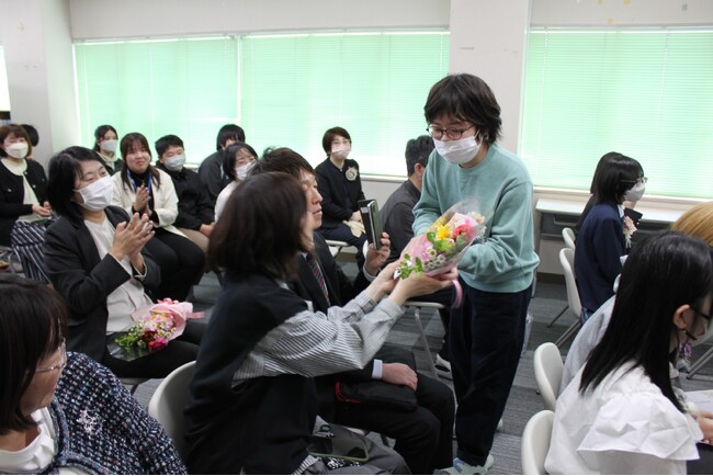 花束贈呈では、卒業生がサプライズで書いたお手紙を、感謝の言葉と共に保護者の方へ渡しました。