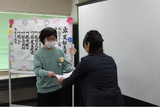 卒業証書は、生徒と関わりの深かったスタッフが、卒業生一人ひとりの人柄や成長を称えオリジナルで書いた文章です。それぞれのスタッフが生徒に思いを込めて読みあげる時間は、とてもあたたかいものとなりました。