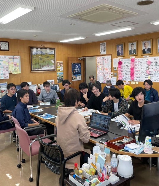 菅野町長やかせぐ課の方々、町民の方々とディスカッションし、「面白いことをやりたい」「月山は人気があるが通り過ぎてしまう」という言葉から、GSCとして出来ることは何があるのかから検討が開始しました。