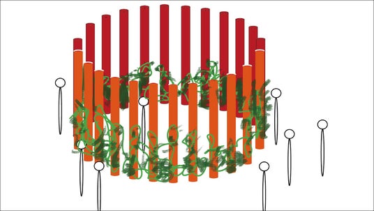 直径40cm・高さ3mの鉄柱16本、赤色で塗装し、円を描くように設置します。