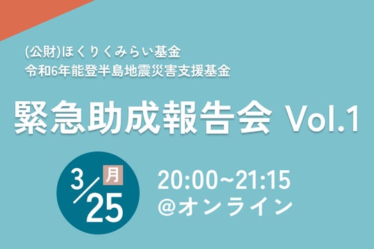 イベント名:令和6年能登半島地震災害支援基金「緊急助成オンライン報告会 Vol.1」