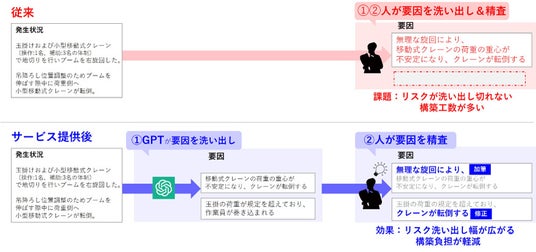 SpectA KY-Toolによる労災対策・品質対策情報の活用において、お客さまが社内で蓄積している災害事例や品質トラブル事例に関する情報の中には、状況/要因/対策などのデータが不十分なものも散見されており、安全管理業務を推進するユーザーにとって必要な情報が不足している場合がありました。SpectA KY-Toolがお客さまの社内蓄積情報を学習する際、状況/要因/対策などの不十分なデータを事例の文脈に沿って生成AIで補うことで、ユーザーが必要な情報をより精度高くスムーズに活用できるようにしました。現時点では、お客さまの生成AI活用の意向や機能のメリット・デメリットを考慮し、データセット拡充サービスとして提供を開始します。また今後は、標準機能として実装していくことを検討しています。
