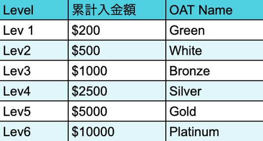 獲得できるSlash OATと累計入金額の条件は以下の表をご覧ください。
