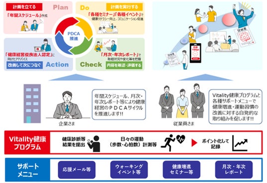 住友生命保険相互会社(取締役代表執行役社長 高田 幸徳、以下「住友生命」)は、企業の健康経営・健康増進活動をサポートするサービス「Vitality福利厚生タイプ※1」(以下「本サービス」)をNECファシリティーズ株式会社(代表取締役執行役員社長 橋谷 直樹、以下「NECファシリティーズ」)に提供することを決定しましたので、お知らせします。
