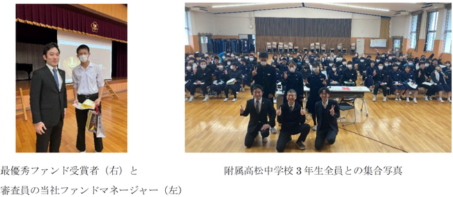 当企画は、生徒達が授業を通して作成した投資信託案の中から優秀賞を選定するものです。今年度はZoomと高松市での対面を組み合わせ、3回の授業を行いました。