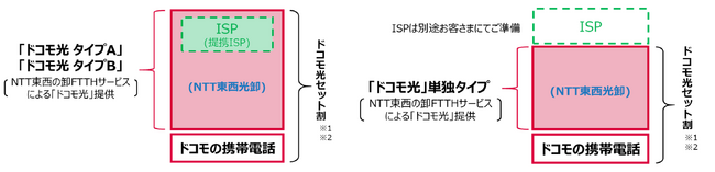 (参考) 「ドコモ光 タイプA」「ドコモ光 タイプB」および「ドコモ光」単独タイプの提供イメージ