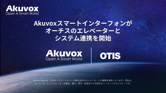 Akuvox Japan(アキュボックスジャパン、本社:東京都中央区、代表取締役:楊 波、以下Akuvox)は、日本オーチス・エレベータ株式会社(以下 日本オーチス)のエレベーターとの連携を発表いたします。この連携により、「Akuvox」のスマートインターフォンの集合玄関機からマンションに入り、日本オーチス製のエレベーターを自動で呼び出し、登録された階へのサービスを提供する事が可能になります。