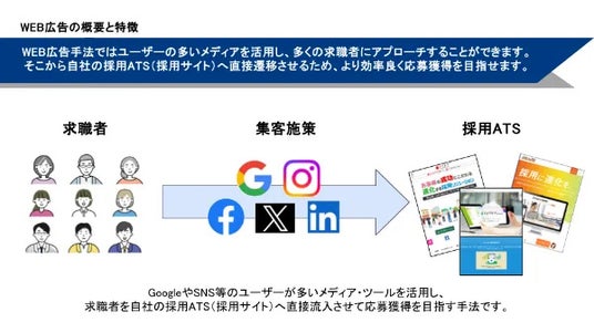 WEB広告で多くの求職者にアプローチし、自社の採用ATSへ直接遷移させることで、効率良く応募獲得を目指せます。