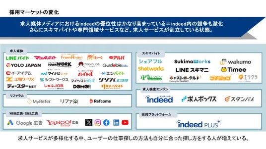 Indeedやスキマバイトアプリなど、求人サービスが多様化する中でユーザーの仕事探しの方法にも変化が見られています。