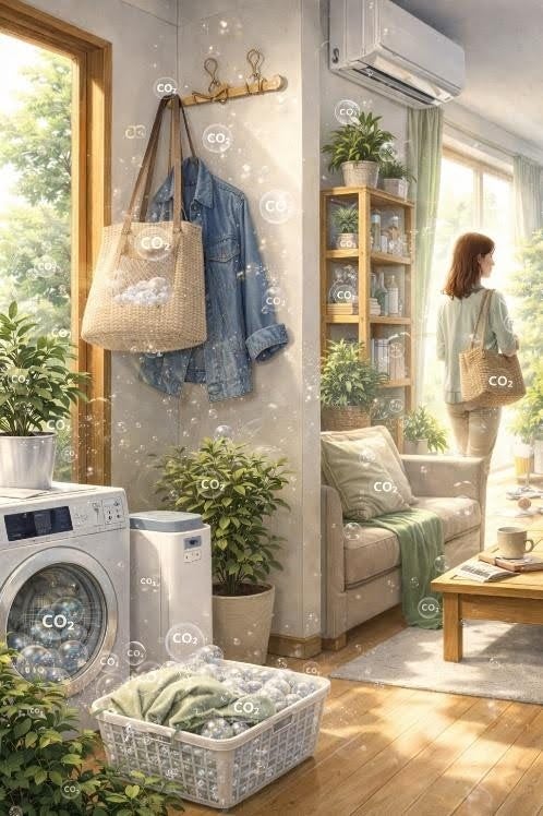 CO2回収は巨大設備だけで行うものではなく、日常生活の中で自然に行われる。