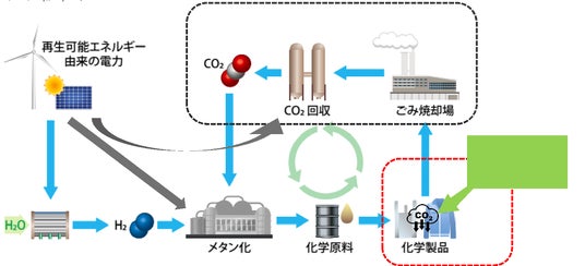 そして回収されたCO2は、ごみ焼却施設で回収され、化学原料や燃料として再利用される。