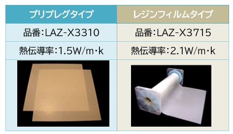 プリプレグタイプで1.5W、レジンフィルムタイプで2.1Wの熱伝導率を持ち、レジンフィルムタイプではチップ埋込用のキャビティを樹脂で埋め込むための高流動性も付与しています。
