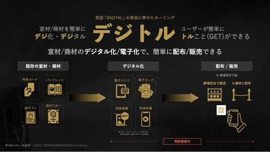 「デジトル(デジとる)」とは、既存の宣材・商品をデジタル化にし、簡単に配布・販売できるサービスです。デジタル化により、生産・配布コストの削減だけではなく、コレクションアイテムできることで、鑑賞や来場頻度の向上につながります。