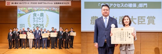 日本初のフードバンクであるセカンドハーベスト・ジャパン(本部所在地:東京都台東区、以下、2HJ )は、この度、農林水産省が展開する国民運動「食から日本を考える。ニッポンフードシフト」の一環として創設した「第一回食と農をつなぐアワード」(https://nippon-food-shift.maff.go.jp/2025/aw_connect_hyosho.html)の「食品アクセスの確保」部門で農林水産大臣賞を受賞。11月8日(土)に表彰式が実施されました。