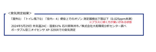 この無臭化ユニットを取り付けた「感染予防型 仮設トイレ」は2024年5月に行われた臭気調査で無臭が確認されています。
