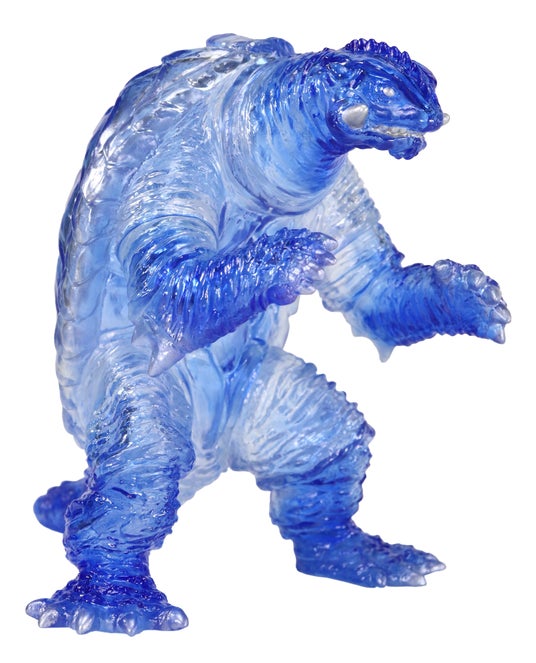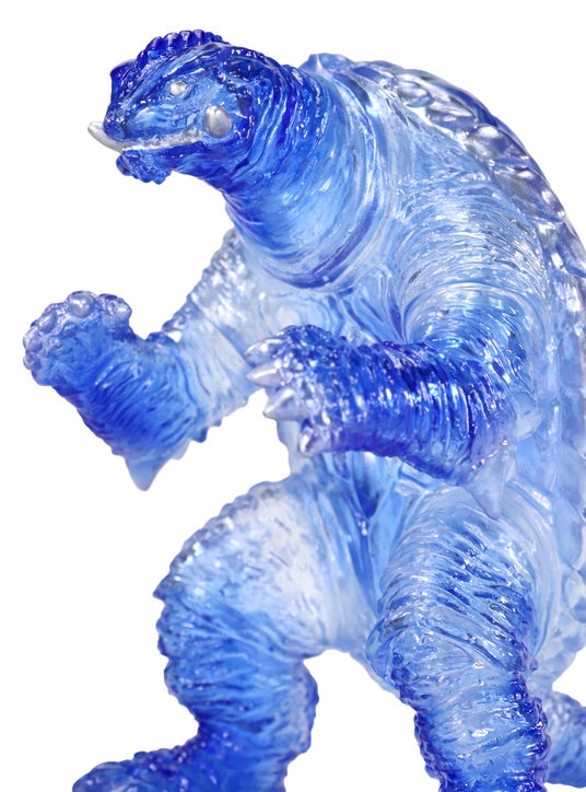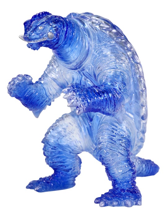 『ガメラ2 レギオン襲来』に登場のガメラ(1996)が、日本国内生産のソフビ職人たちによる透明度の高いクリア成形と、TOHO theater STOREのオフィシャルカラーをイメージしたクリアブルー彩色による美しい仕上がりにて登場!!