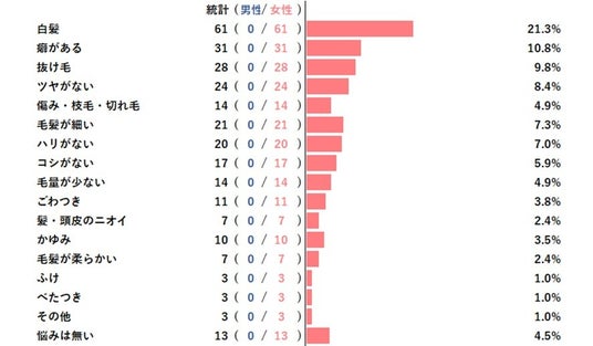 ──────────────────────────────「髪に関する悩みのうち、あてはまるものを選んでください」