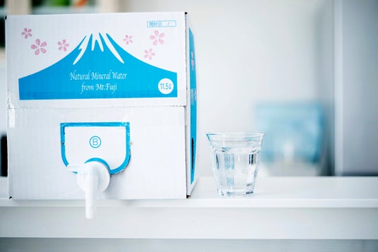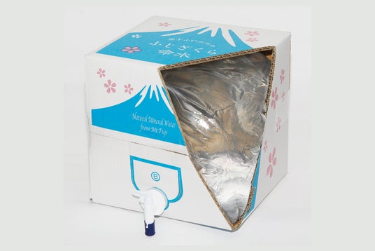 バッグインボックス(BIB)とは、お水の入ったビニールパックが箱に入っている容器のことで、ふじざくら命水のバッグインボックスは、ハイバリアの2重フィルムの水パック(11.5L)が段ボールに入っています。
