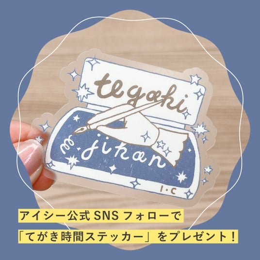 アイシーの公式SNSアカウントをフォローしていただいた方全員に『てがき時間』の特製ステッカーをプレゼントします!