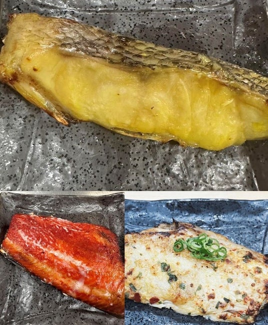 ソイ西京漬け(上)・ホッケみりん焼き(左下)・ホッケねぎ味噌焼き(右下)