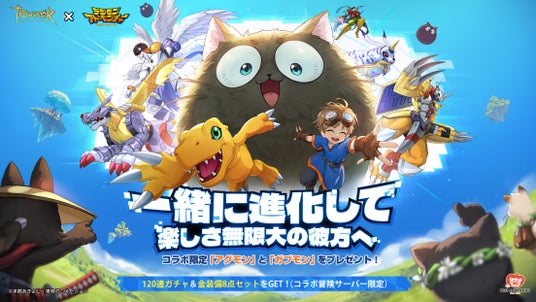 世界に繋がり、みんなで冒険するRPG『ツリーオブセイヴァー:ネバーランド』と名作TVアニメ『デジモンアドベンチャー』のコラボが本日(4月24日)正式にスタートします。『デジモンアドベンチャー』ファンの皆さん、アジア11地域のプレイヤーたちと共に「一緒に進化して、楽しさ無限大の彼方へ!」というゲームの醍醐味を是非、ご体験ください。イベント期間中は、コラボ限定のアグモンとガブモンがプレゼント!さらにコラボ限定冒険サーバーにログインすると、猫霊ガチャチケット120枚と金装備8点セットをゲットできます。「選ばれし子ども」の皆さん、再びデジモンとタッグを組み進化して、地域を超えた冒険の旅をお楽しみください。
