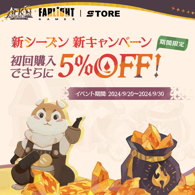 イベント期間中に、公式チャージセンター『Farlight Game Store』を利用した決済については、“初回のみ5%”の割引をいたします。