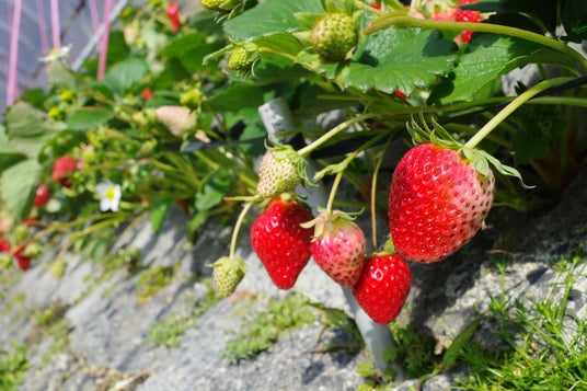 「石垣いちご」とは、石垣を積み上げ、その中の土で栽培する栽培方法のことです。いちごの栽培方法は通常、畑にそのまま植える「土耕栽培」か、プランターのようなものに植えて高い位置で栽培する「高設栽培」が多いです。