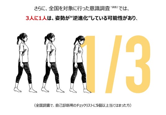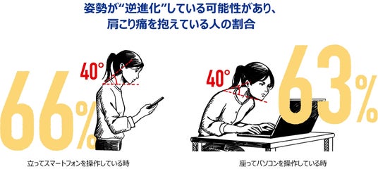 全国調査では、3人に1人は姿勢が逆進化している可能性が。そのうち7割以上は肩こり痛を実感。