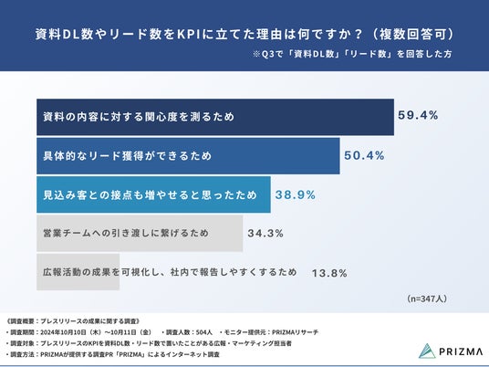 プレスリリースの成果をより可視化できるKPIは「資料DL数」が最多という結果に
