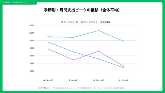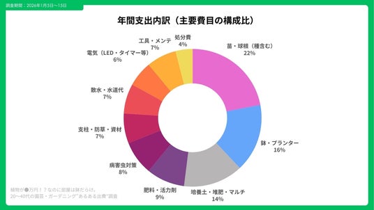 自宅で楽しめる趣味として人気の園芸・ガーデニング。しかし、育てるジャンルによって出費の傾向は大きく異なります。 Song合同会社は、直近12か月に園芸・ガーデニング関連の支出がある20~40代を対象に、 「育て方別の“あるある出費”」を調査。 ガーデニング・花、ビザールプランツ(珍奇植物)、家庭菜園の3タイプを比較し、 支出構造の違いと家計への影響を明らかにしました。
