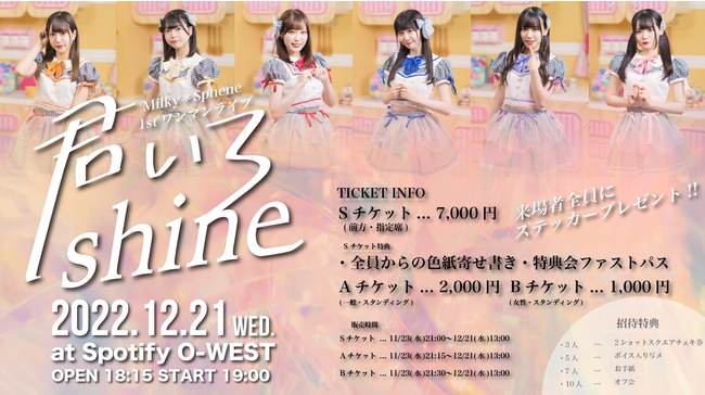 そんな新メンバーが、加入して加速していくMilky✳︎Spheneだが同月の12月21日(水)にSpotify O-WESTにて開催する待望の1stワンマンライブ「君いろshine」を控えている。