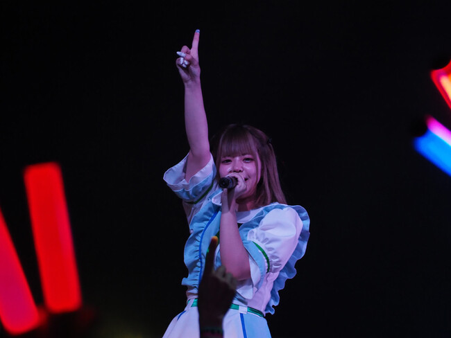 ライブが、始まる前に「立ち位置が、不安です。」と語っていたが、一曲目の「24HOURS!」からラストの曲「あいあい傘」までの4曲を全力で踊って歌い堂々のステージデビューを果たした。