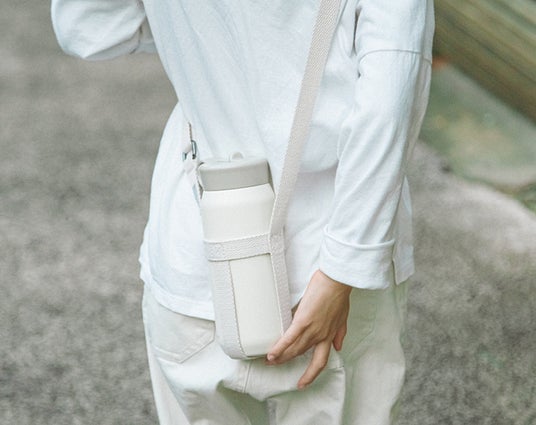 タンブラーのカラーに合わせたストラップのセット。長時間肩に掛けても痛くなりにくい幅広のベルトで、長さは約650~1300mmの間で調節できます。