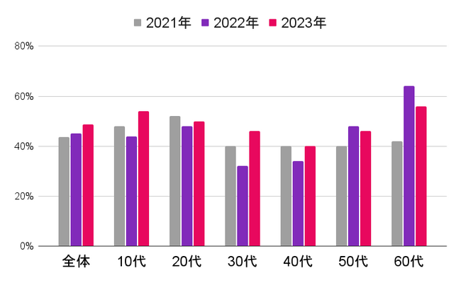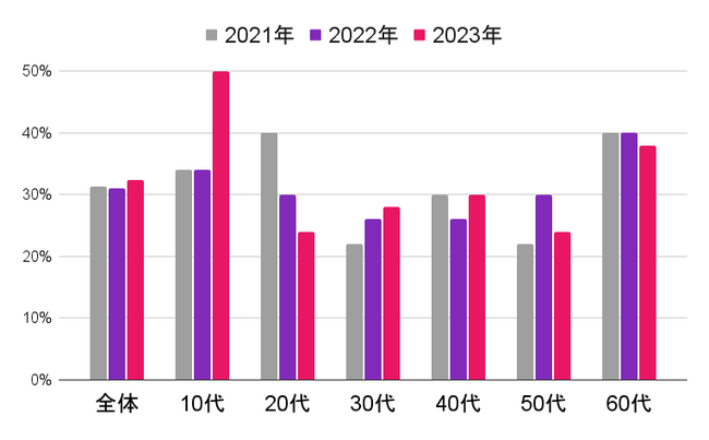 また過去の結果では、10代は2021年で48%、2022年で44%といずれも50%を切っていましたが、今回は半数を超える結果となり、通信制高校の情報をインターネットや周りの友達などから得る機会が増えているのかもしれません。