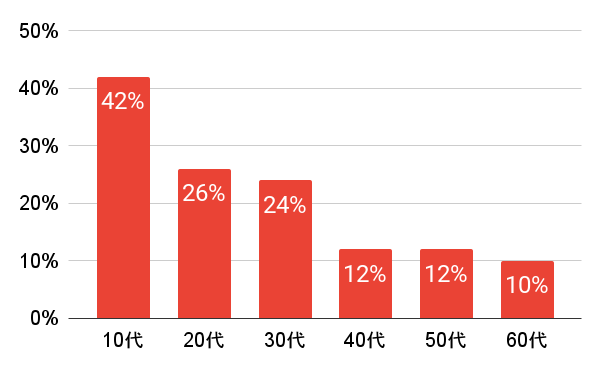 20代では26%、30代では24%となっており、とりわけここ数年の中高生の間で通信制高校という選択肢をとる人が増えている印象です。