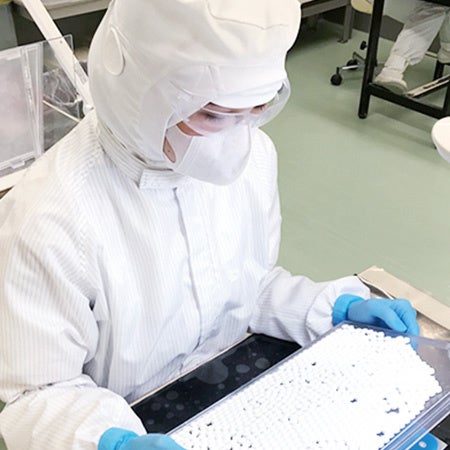 日本国内の健康補助食品 GMP※の認定をうけている工場にて、原料受け入れ時の確認か