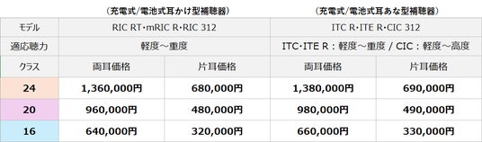 ※上記は、補聴器本体の希望小売価格(非課税)です。充電タイプは、専用充電器(17,600円・税込み)が別途必要になります。