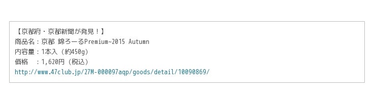 【京都府・京都新聞が発見!】京都 錦ろーるPremium~2015 Autumn
