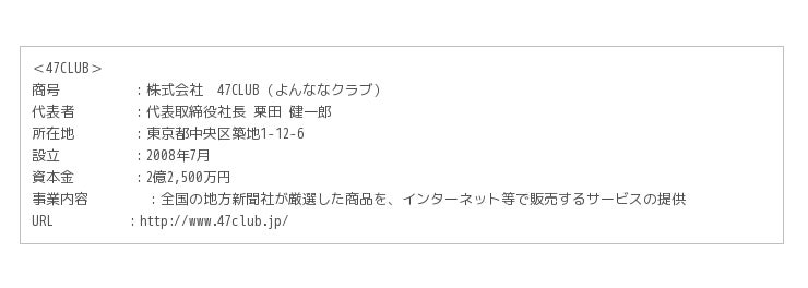 47CLUBは、「地方を元気に 日本を豊かに」を合言葉に、2007年にスタートした全国の地方新聞社が発掘・ 厳選した地域の商材を販売するインターネットショッピングサイトです。