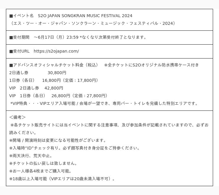 ■主催:S2O JAPAN SONGKRAN MUSIC FESTIVAL 2024実行委員会