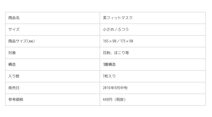 装着時に顔の輪郭を美しく見せるための特殊な形状のマスク「美フィットマスク」をリニューアルし、2016年9月20日より発売します。全国のドラッグストア、コンビニエンスストアを中心に販売し、初年度4,000万枚の販売を目指します。