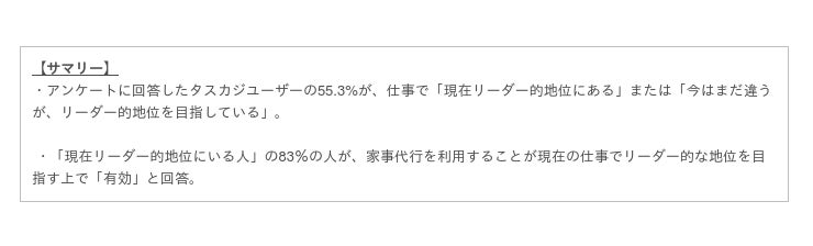 事業内容: 家事代行マッチングプラットフォーム「タスカジ」の運営