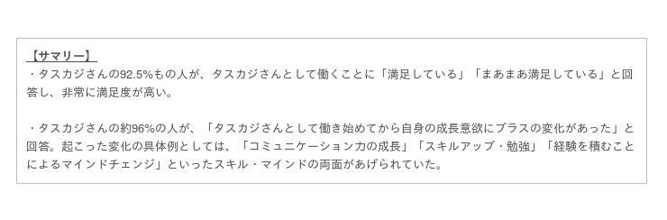 我々は設立以来あたらしい家事文化の創出にコミットしてまいりましたがアンケート結果はまだ不十分であるという厳しい結果となっております。我々はより一層自社のビジョン・ミッションの推進にコミットしていく想いです。