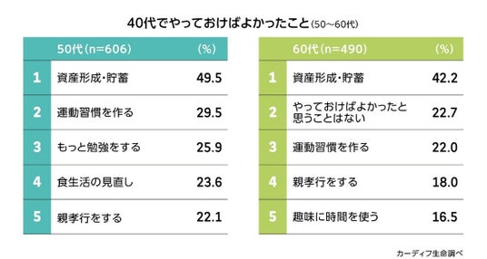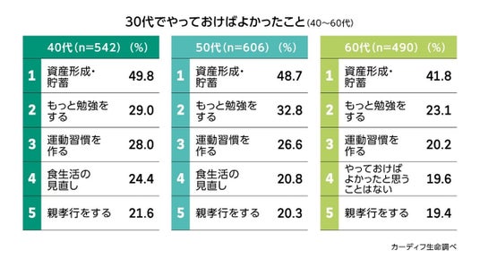 - 過去にやっておけばよかったこと、全世代1位は「資産形成・貯蓄」
