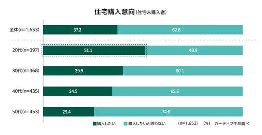 - 特に20代の購入意向が昨年から9pt上昇(42%→51%)して過半数を占めており、若い世代で住宅購入を前向きに検討する人が増加している。